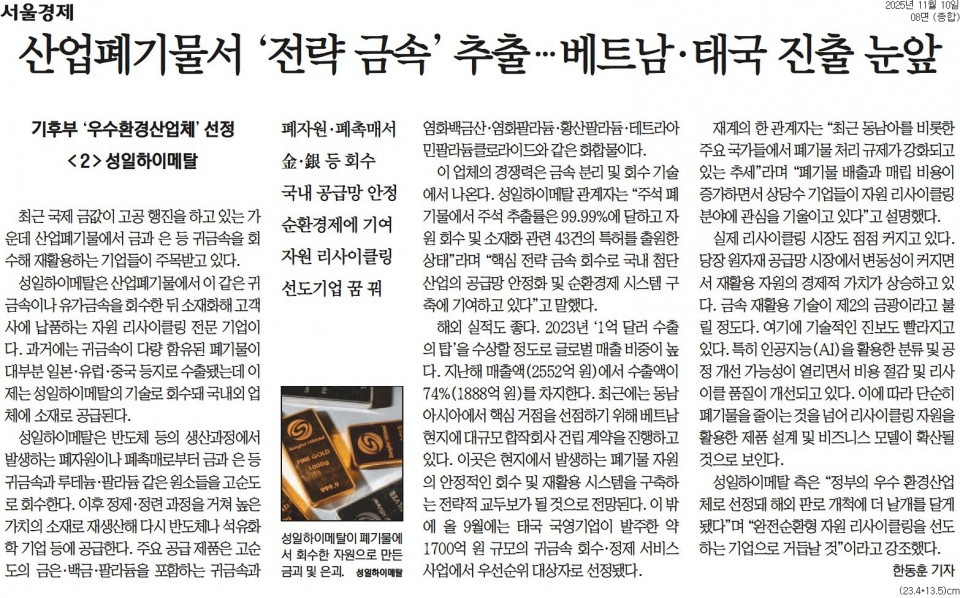 서울경제_산업폐기물서 '전략 금속' 추출…베트남·태국 진출 눈앞_종합 08면 페이지 정보 작성자 최고관리자 작성일2025.11.27 조회50회 댓글0건 관련링크 이전글 목록 본문 서울경제_산업폐기물서 '전략 금속' 추출…베트남·태국 진출 눈앞_종합 08면 댓글목록 등록된 댓글이 없습니다. 이전글 목록